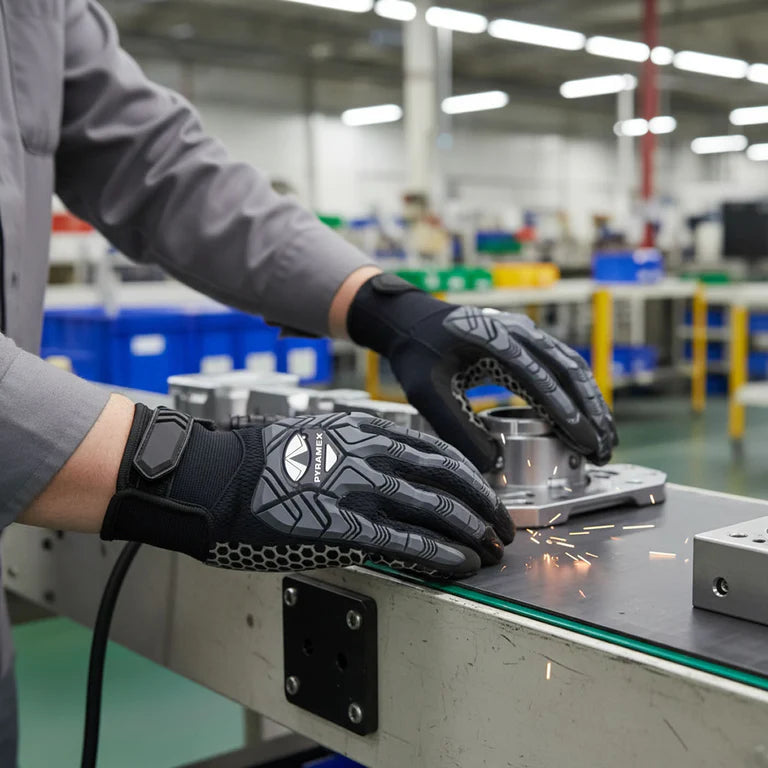 The Pyramex GL203HT Synthetic Leather A2 Cut Impact Gloves deliver exceptional protection and functionality. Certified to ANSI/ISEA 105 standards with Abrasion 6 and Puncture 2 ratings, these gloves are designed for demanding environments. The synthetic leather palm provides superior grip, while TPR impact protection shields fingers and knuckles. A breathable mesh stretch back enhances comfort, and the hook and loop TPR wrist closure ensures a secure fit. With a terry cloth thumb for wiping away sweat, these gloves combine durability, comfort, and practicality for any job.